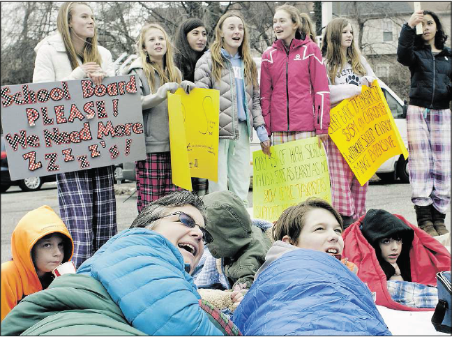 After multiple board meetings and multiple start time reports, in 2015, with schedules unchanged, parents and students combined forces, filming a video and organizing a “sleep-in” at district headquarters.